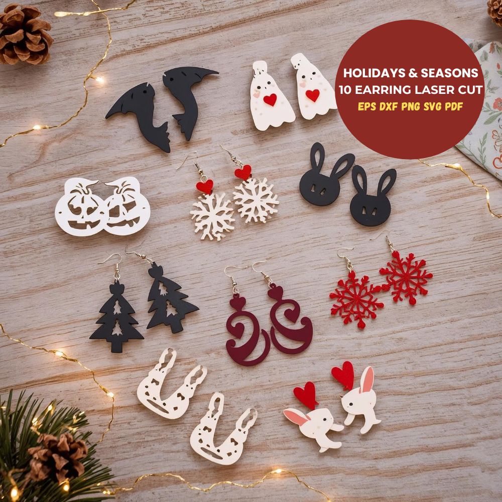 ๐ Holidays & Seasons Earring Laser Cut Bundle | 10 Festive SVG Designs