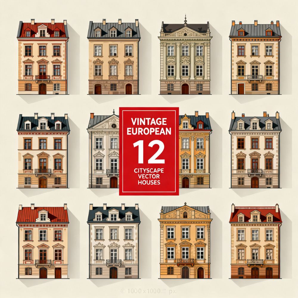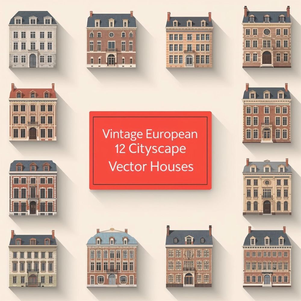 Bring timeless European charm to your creative projects with this Vintage European Cityscape Vector Houses Set! β¨