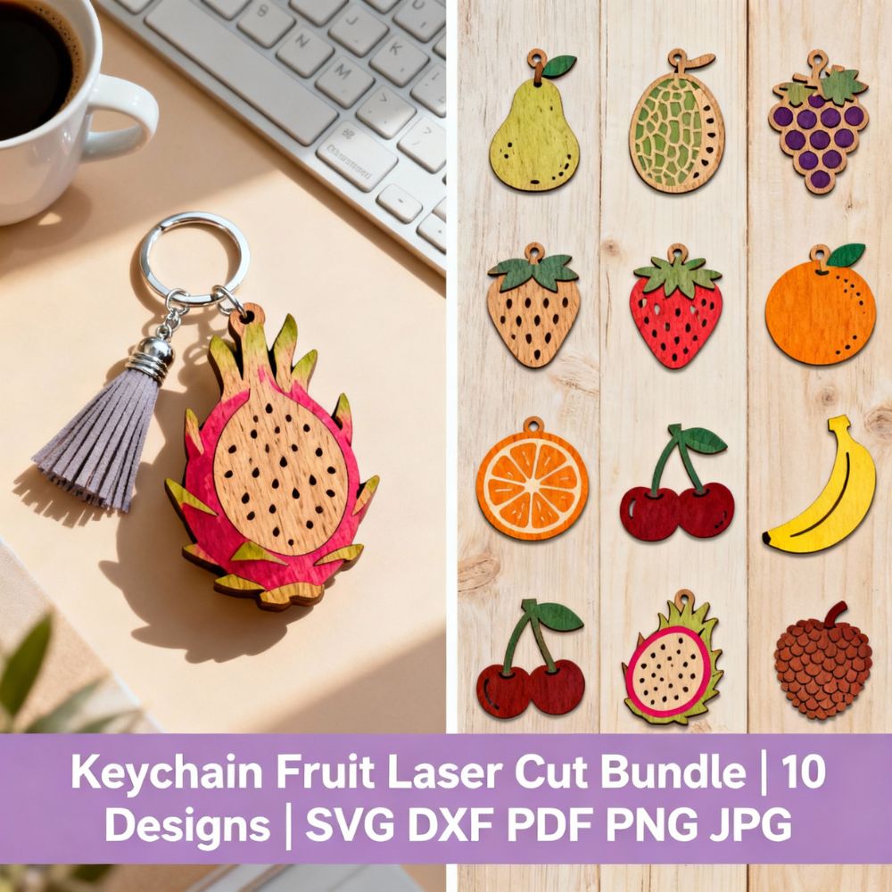 π Fun and fruity laser-cut keychain designs! This 10-fruit bundle includes SVG, DXF, PDF, PNG, JPG, AI, and EPS files β perfect for Cricut, Glowforge, and CNC cutting. Create stylish wooden accessories and handmade gifts instantly!