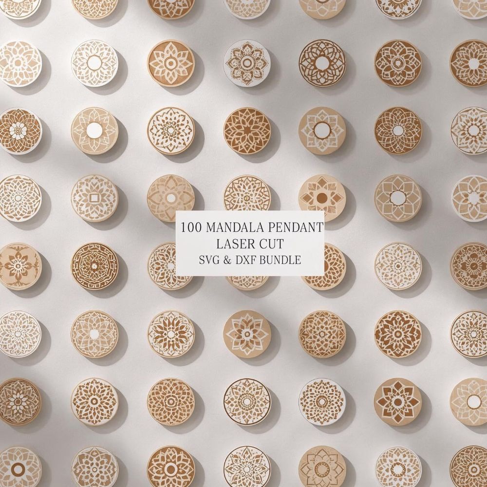 100 Mandala Pendant Designs | Laser Cut SVG & DXF Bundle for Jewelry Making