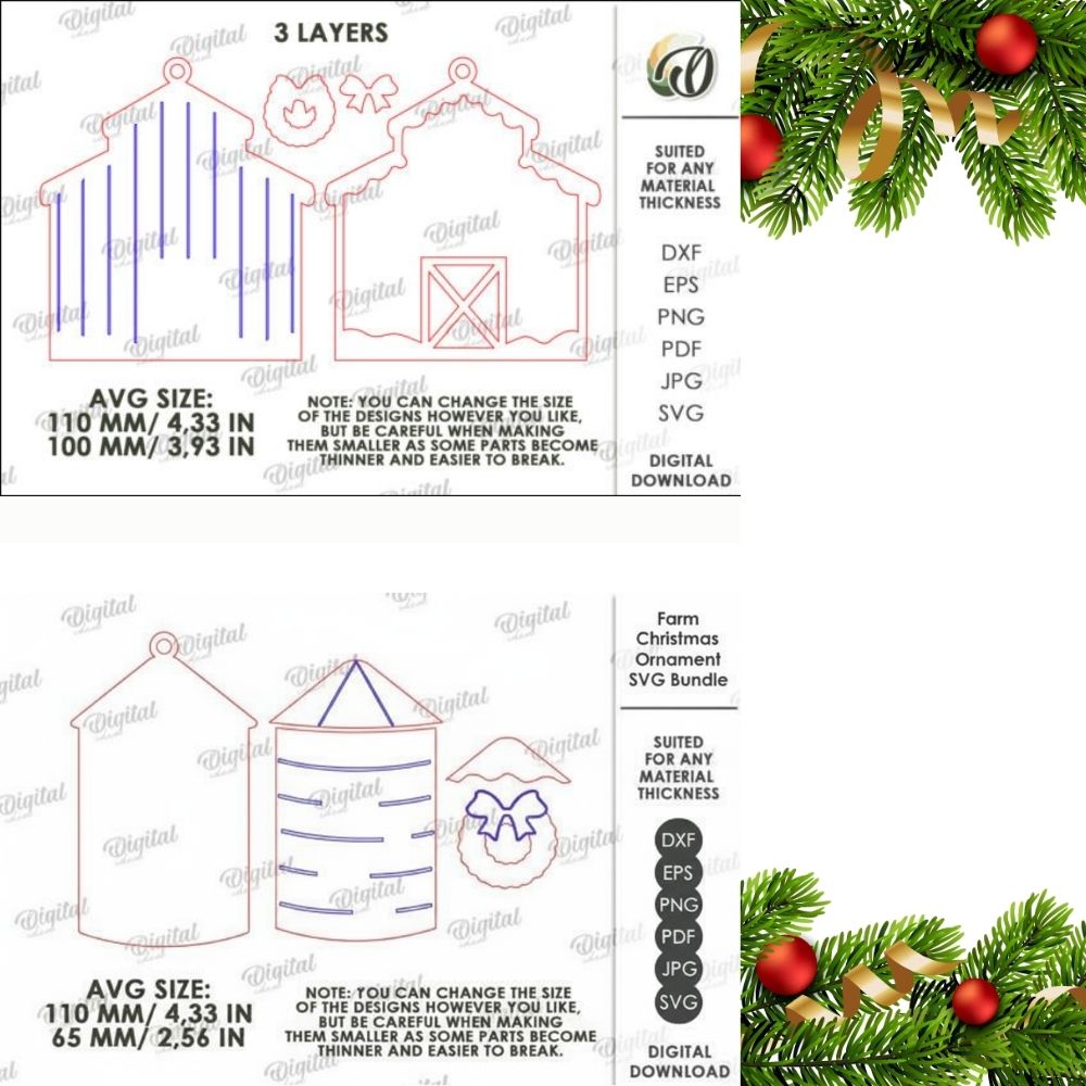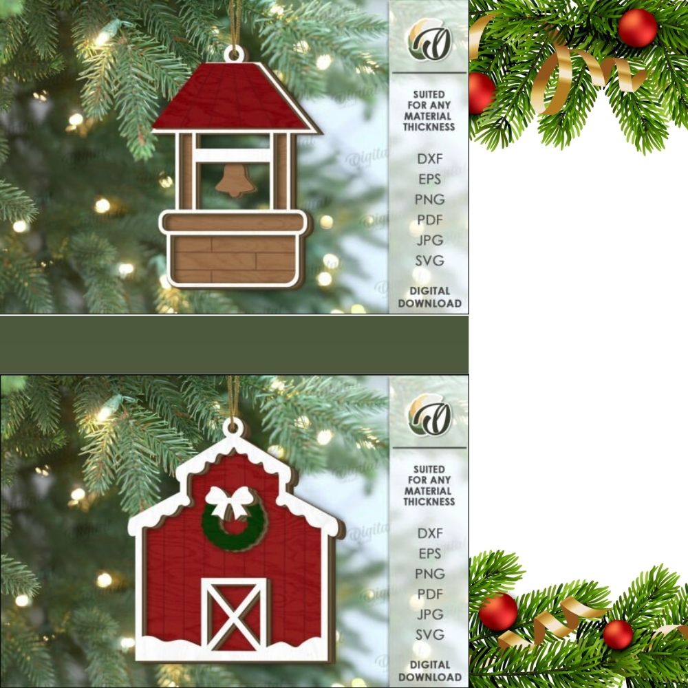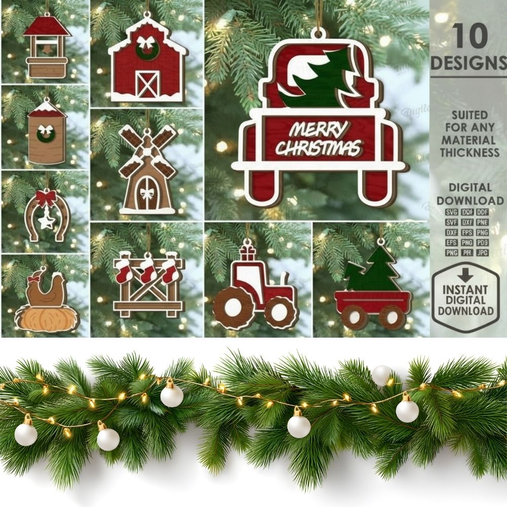 Farm Christmas Ornaments Laser Cut Bundle โ download 10 high-quality SVG, DXF, EPS, PDF, JPEG, and PNG files featuring rustic farm-themed holiday designs. Perfect for laser cutting, CNC machining, and festive DIY crafts. Create unique Christmas decorations, personalized gifts, and charming tree ornaments with ease. Compatible with popular cutting machines and design software. Elevate your holiday dรฉcor with these beautifully detailed, versatile digital files! ๐๐โจ