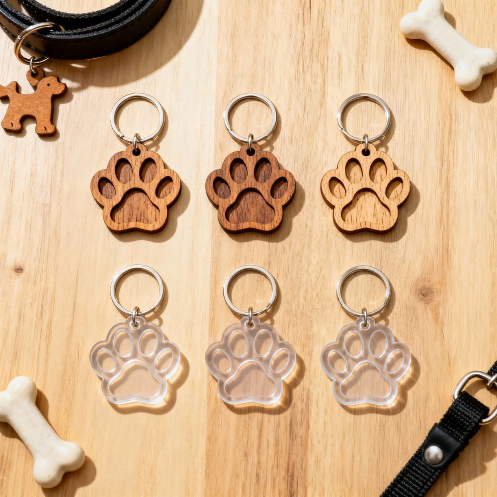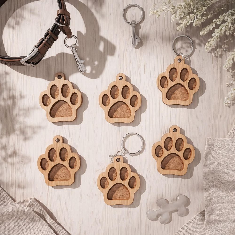 Laser Cut Paw Print Keychain SVG Bundle β Wooden Pet Lover Gift, Animal Tag Accessory, DIY Craft