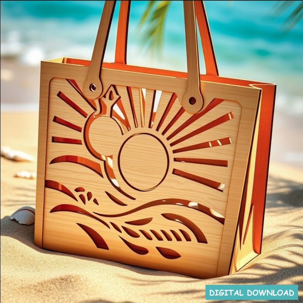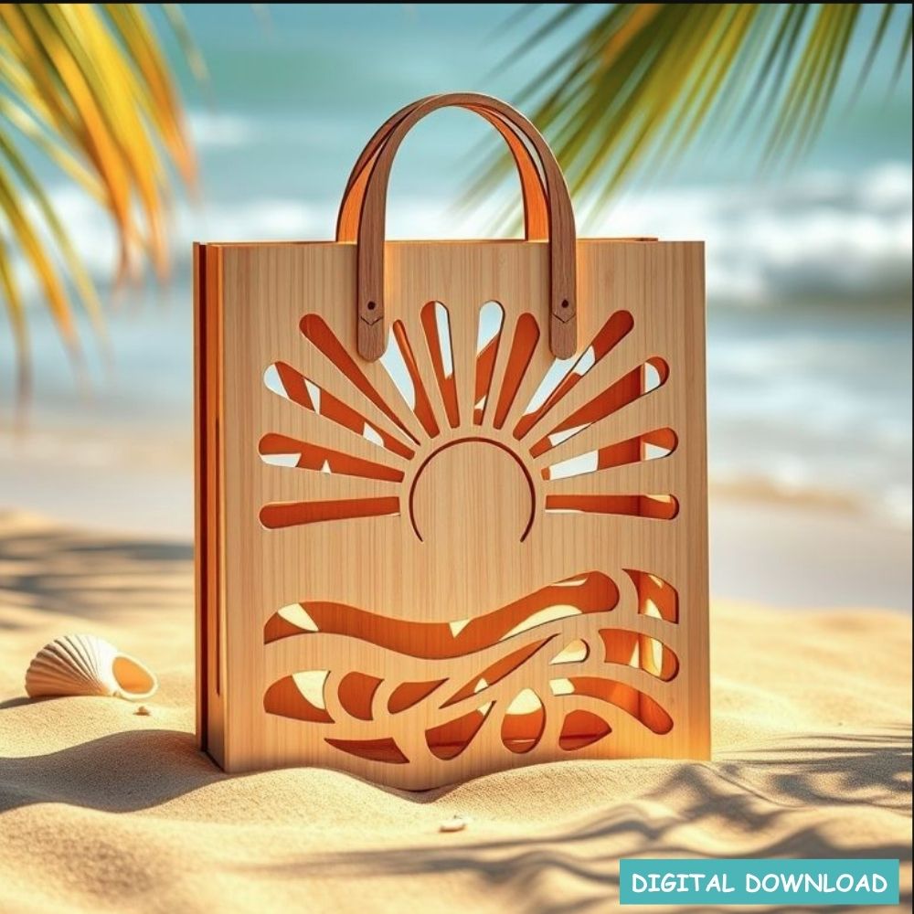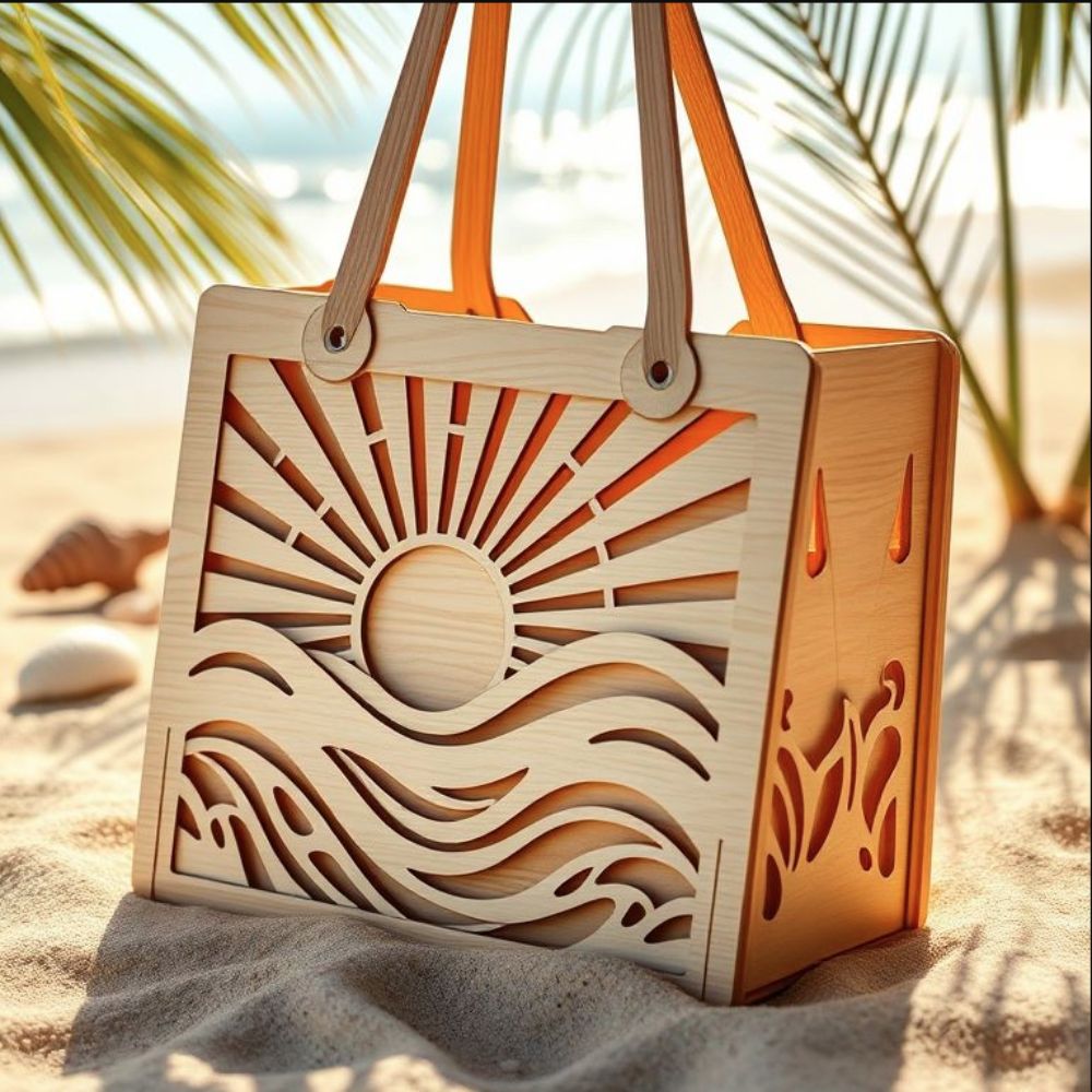 Create your own stylish wooden beach tote with this laser-cut SVG file featuring elegant wave and sun designs. Perfect for summer crafting, beach trips, or eco-friendly handmade gifts.