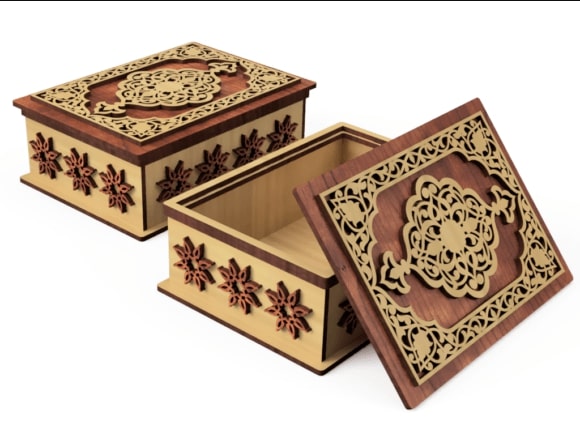 Add timeless beauty and elegance to your collection with this Oriental-Inspired Laser Cut Wood Jewelry Box β€” a perfect fusion of craftsmanship and intricate design. This laser cut template is ideal for creating a beautiful wooden box that doubles as a jewelry organizer, keepsake chest, or elegant gift box.