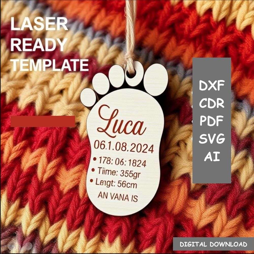 Personalized Baby Footprint Birth Ornament Laser Cut File