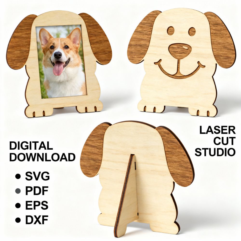 Adorable dog-shaped photo frame laser cut template 🐢 Perfect for personalized pet decor or gifts! Includes SVG, DXF, PDF, EPS files for laser cutting.