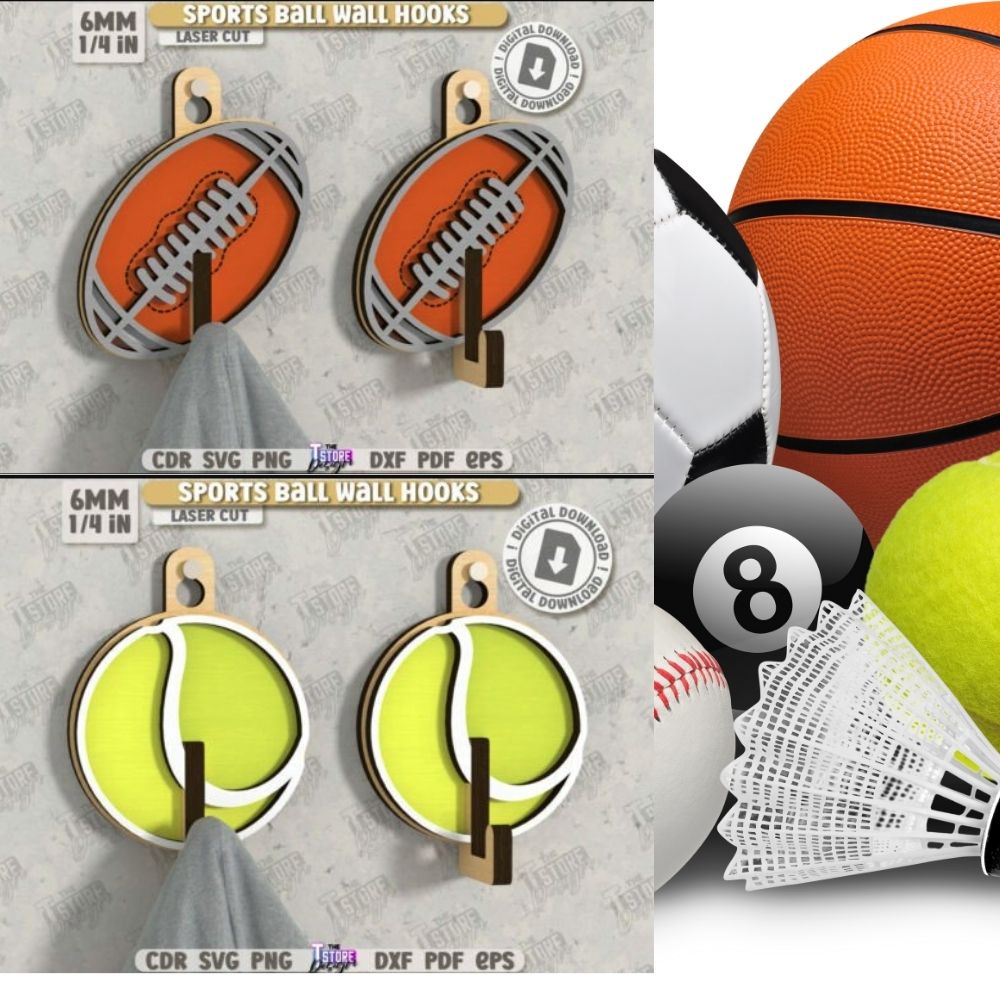 Bring functionality and style together with this Sports Ball Wall Hook Laser Cut Bundle! โฝ๐๐