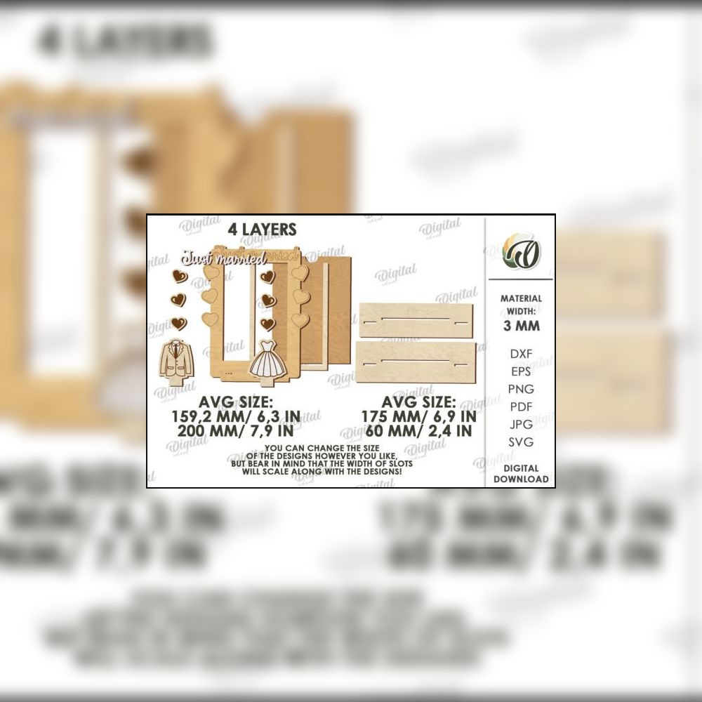 Crafted with precision and designed for laser cutting machines, these templates highlight layered wooden textures and detailed engravings that bring a premium handcrafted feel. Every frame includes a customizable text area for the coupleβs names and wedding date, making each piece a personalized keepsake or thoughtful gift.